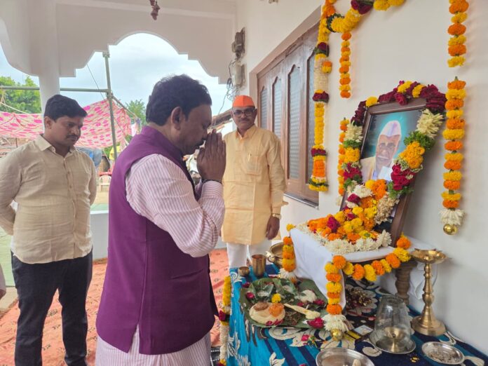चिमूर तालुक्यातील मु. बोथली (वहाणगाव) येथील भारतीय जनता पार्टीचे किसान नेते व ओबीसी समाजाचे मान्यवर नेते मान. एकनाथराव थुटे यांचे वडील स्वर्गीय गजाननराव थुटे यांच्या स्मृतिप्रीत्यर्थ आयोजित चौदावी (तेरावी) कार्यक्रमास माजी खासदार तथा भारतीय जनता पक्ष अनुसूचित जनजाती मोर्चाचे राष्ट्रीय महामंत्री डॉ. अशोकजी नेते यांनी उपस्थित राहून दिवंगत आत्म्यास पुष्पांजली अर्पण करत भावपूर्ण श्रद्धांजली वाहिली.